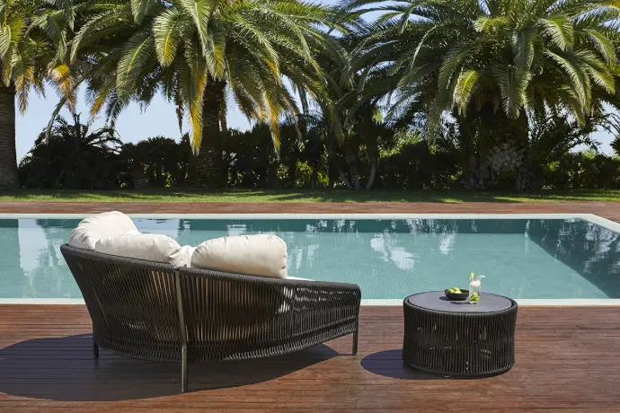 Nada más presentarse esta colección, empezaban a llegar los premios internacionales: Le FRENCH DESIGN Awards, European Product Design Award… «Al plantear esta colección traté de describir, de manera contemporánea, un arte de vivir mediterráneo, que no tiene que ver con el tiempo. Es un universo donde el sol y la tierra se unen», explicaba el diseñador francés Christophe Pillet sobre City. Una estructura de aluminio pintado en polvo es el punto de partida que da origen a cada una de las piezas de esta colección. A ella se unen unos brazos en madera de teca –procedente de bosques sostenibles de tala controlada–, un respaldo acabado en aluminio y cuerda y unos confortables y mullidos cojines. City está compuesta por mesas, un sillón, un sofá doble y uno triple. Todos destilan clasicismo y elegancia y sus cojines pueden ser personalizados tanto en estampados como en colores.