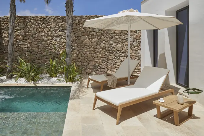 Diseñada por Gabriel Teixidó, para convertirse en un clásico. Como él mismo explica, «su elemento característico, la madera, es un material vivo que conecta bien con las personas y aporta calidez», explica su creador. Robustas y suaves a la vez, sus sillas, sillones, sofás, butacas y mesas combinan la teca de Indonesia (de bosques de tala controlada) y la cuerda sintética. Son un total de catorce piezas a las que se suman una tumbona, una mesita auxiliar y una mesa extensible. Pensadas para jardines, terrazas o porches, se integran con facilidad también en los interiores. «Es una colección humana que encaja perfectamente en ambientes naturales», señala Teixidó.