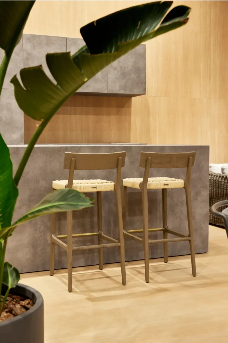 Diseñada por Gabriel Teixidó, para convertirse en un clásico. Como él mismo explica, «su elemento característico, la madera, es un material vivo que conecta bien con las personas y aporta calidez», explica su creador. Robustas y suaves a la vez, sus sillas, sillones, sofás, butacas y mesas combinan la teca de Indonesia (de bosques de tala controlada) y la cuerda sintética. Son un total de catorce piezas a las que se suman una tumbona, una mesita auxiliar y una mesa extensible. Pensadas para jardines, terrazas o porches, se integran con facilidad también en los interiores. «Es una colección humana que encaja perfectamente en ambientes naturales», señala Teixidó.