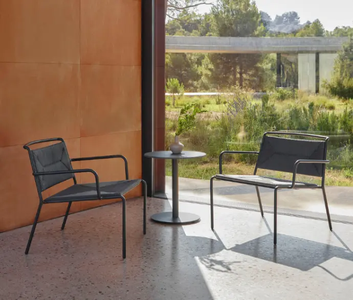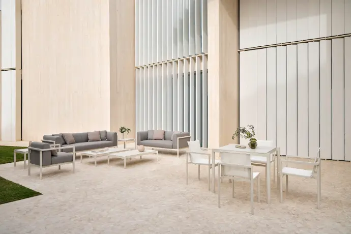 La última colección creada por Mario Ruiz, Premio Nacional de Diseño 2016, para POINT, es un tributo a la producción artesanal y a la sencillez mediterránea. De inspiración minimalista, sus piezas están pensadas para durar e integrarse en cualquier ambiente. La colección está compuesta por mesas, sofás, tumbonas, butacas y sillas, todas apilables. La estructura de los elementos es de aluminio pintado en polvo, material escogido por su durabilidad y por ser 100% reciclable al final de su vida útil, lo que apoya nuestro compromiso con la sostenibilidad.