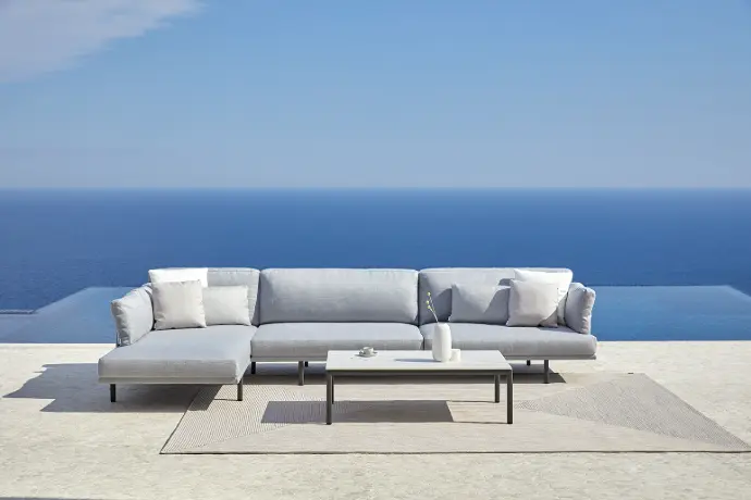«Mi objetivo con Long Island ha sido que fuera tan deseable y tan bien terminada como un mueble de interior». Explica el diseñador Christophe Pillet y añade, «busqué crear la sensación de que estas piezas siempre han existido». Formas rectas y líneas finas definen la silueta de esta colección modular de sofás de exterior. Su diseño, de gran simplicidad, aspira, según confiesa Pillet, «a aportar una elegancia universal y un gran confort». Esta colección persigue convertirse en un nuevo clásico y consta de trece piezas que se complementan con tres mesas con estructura en aluminio.