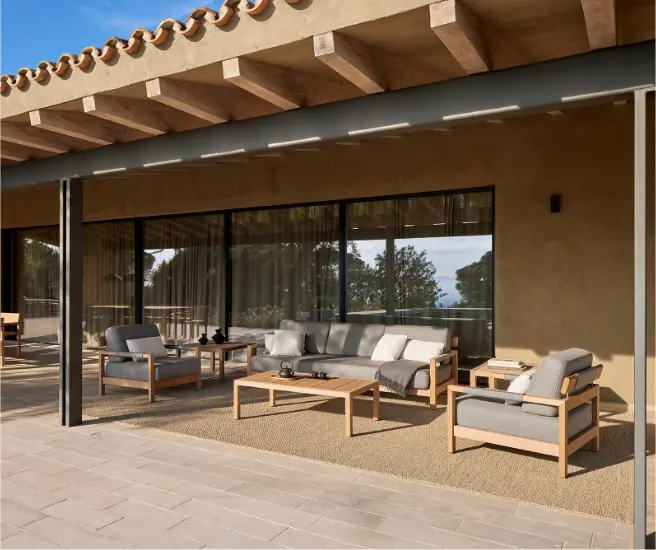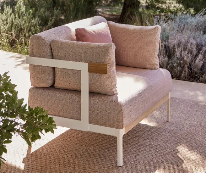 Una de las piezas claves de este lanzamiento es la introducción de TechTeak, un material innovador diseñado para muebles de exterior que reproduce meticulosamente el aspecto cálido y natural de la teca, al tiempo que ofrece una durabilidad y una resistencia a la intemperie inigualables. A diferencia de la teca tradicional, TechTeak no requiere mantenimiento, lo que la convierte en una solución práctica para exteriores. Además, es 100% reciclable al final de su ciclo de vida, lo que refuerza aún más nuestro compromiso con la sostenibilidad.