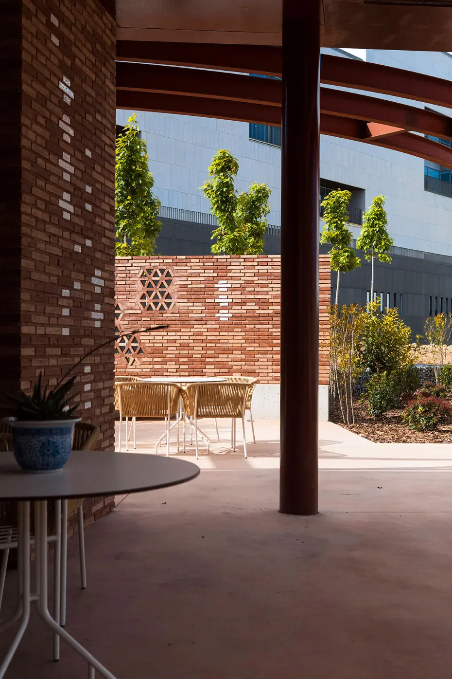 Nuestra colección Weave de Vicent Martínez presta solidariamente a este espacio su confort, su diseño amable y su capacidad para lograr que sus usuarios puedan disfrutar de las alegrías de la vida al aire libre, incluso en circunstancias complicadas. Nuestro mobiliario forma parte de este proyecto arquitectónico, que lleva la firma de Benedetta Tagliablue y a la que la interiorista Patricia Urquiola ha aportado su singular visión del diseño de interiores.
