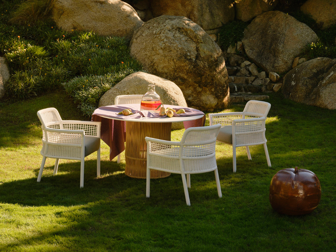 Nacida del encuentro entre materia, oficio y emoción, esta nueva propuesta celebra el equilibrio que permanece en el tiempo. Diseñada por Fabio Novembre, Escala reinterpreta el estilo clásico desde una mirada actual y sensata. Su trenzado artesanal, las proporciones precisas y la pureza de su lenguaje despiertan una familiaridad inmediata, con la calma de lo conocido y la singularidad de lo inesperado.
