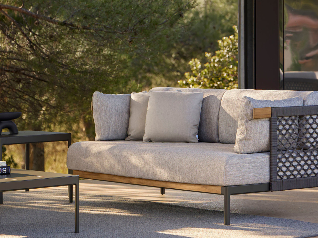 Todas las piezas de la colección están elaboradas con una estructura en aluminio inyectado, incorporando materiales diferentes en respaldos y brazos que dan lugar a dos versiones con su propia personalidad. Legacy Essence se caracteriza por su sencillez y ligereza. Por su parte, Legacy Woven, tiene la peculiaridad de que su estructura de aluminio funciona como bastidor para el desarrollo de una estudiada trama en cuerda. Ambas versiones ofrecen opciones de personalización en brazos y frontal del asiento. Completa la colección una selección de mesas, tanto auxiliares como de centro.