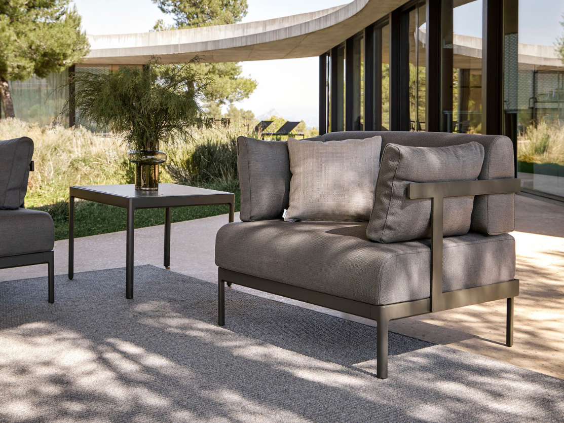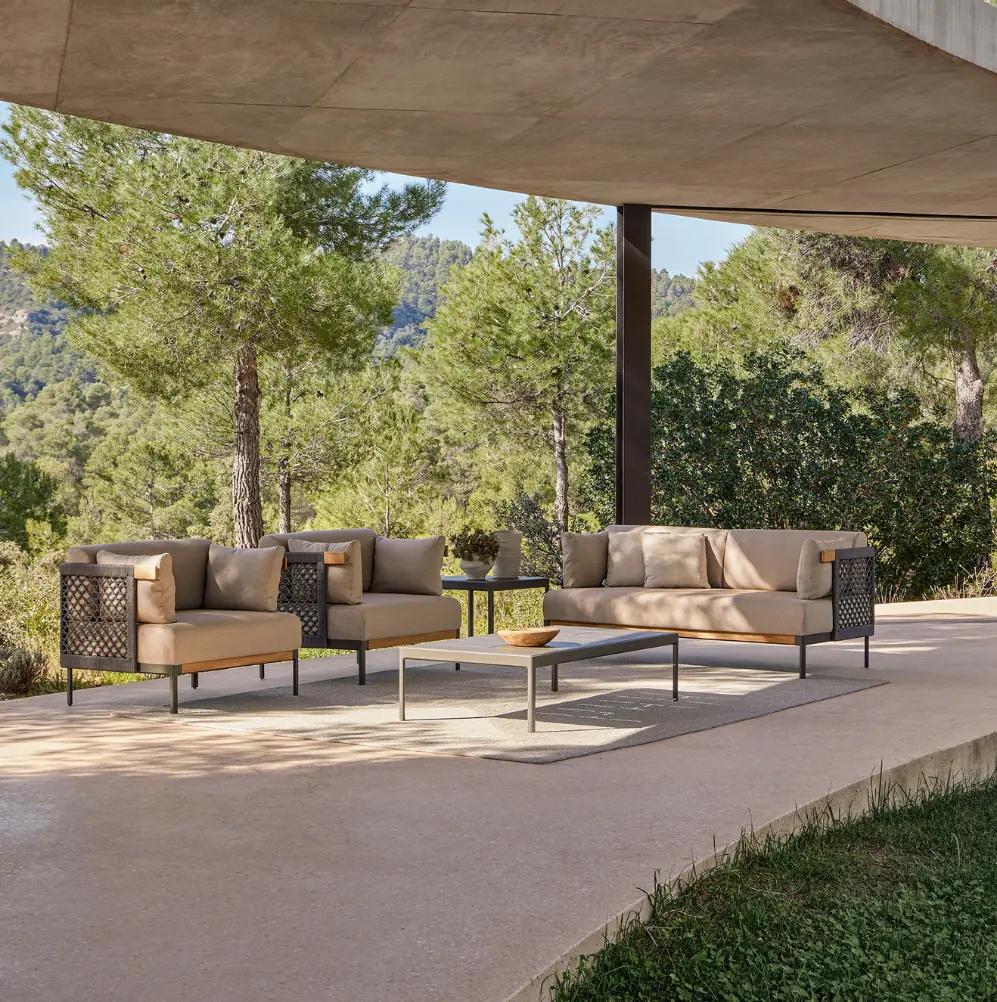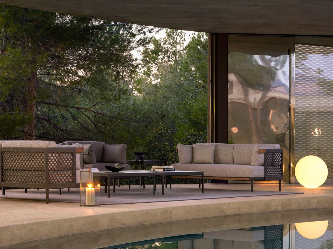 Con una estética contemporánea, Legacy es una colección de mobiliario exterior versátil y precisa, diseñada para adaptarse a proyectos tanto de interior como de exterior. Según Ruiz, busca ofrecer múltiples posibilidades compositivas y crear ambientes sofisticados.
