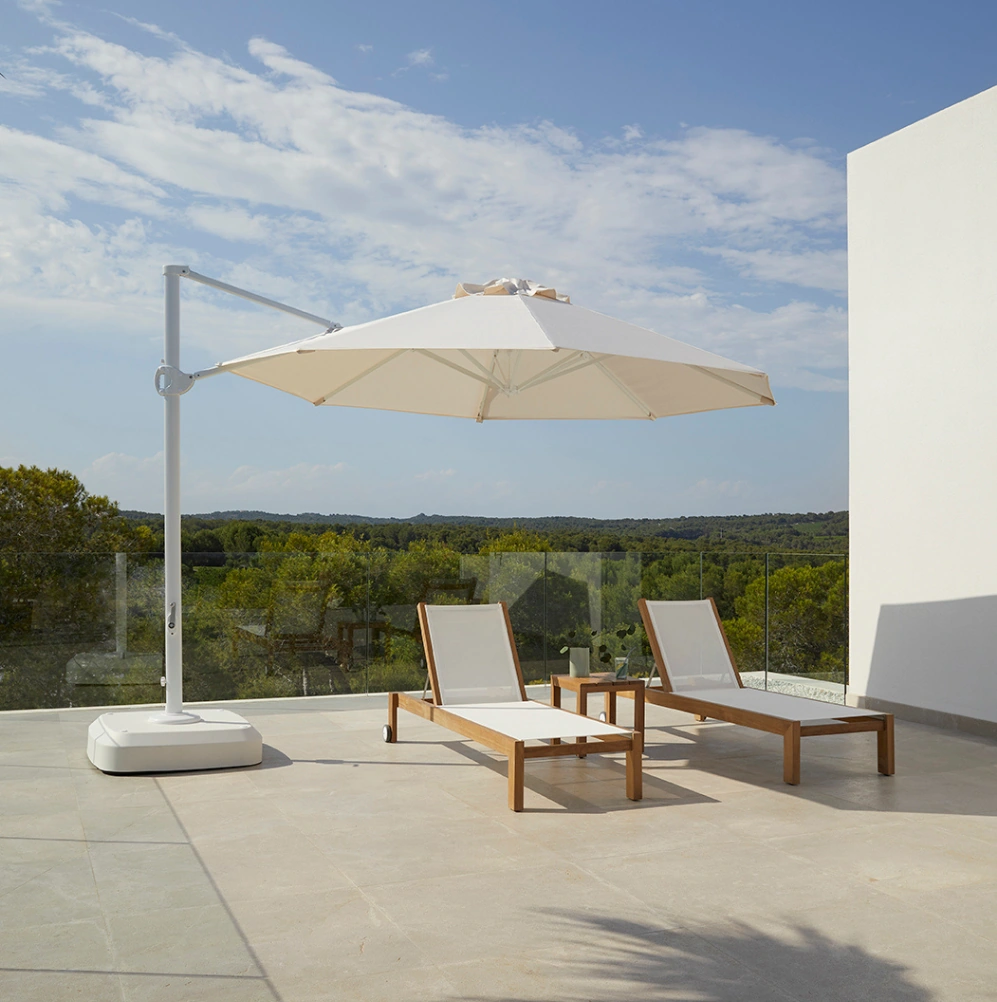 POINT Studio ha desarrollado una completa familia de parasoles con diferentes configuraciones que se adaptan a entornos diversos. Estructuras de aluminio pintado en polvo con líneas depuradas. Las cubiertas están producidas en tejidos de POINT de alta resistencia a la intemperie y al sol que se seca rápidamente y repele los hongos y las manchas.