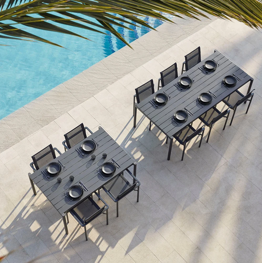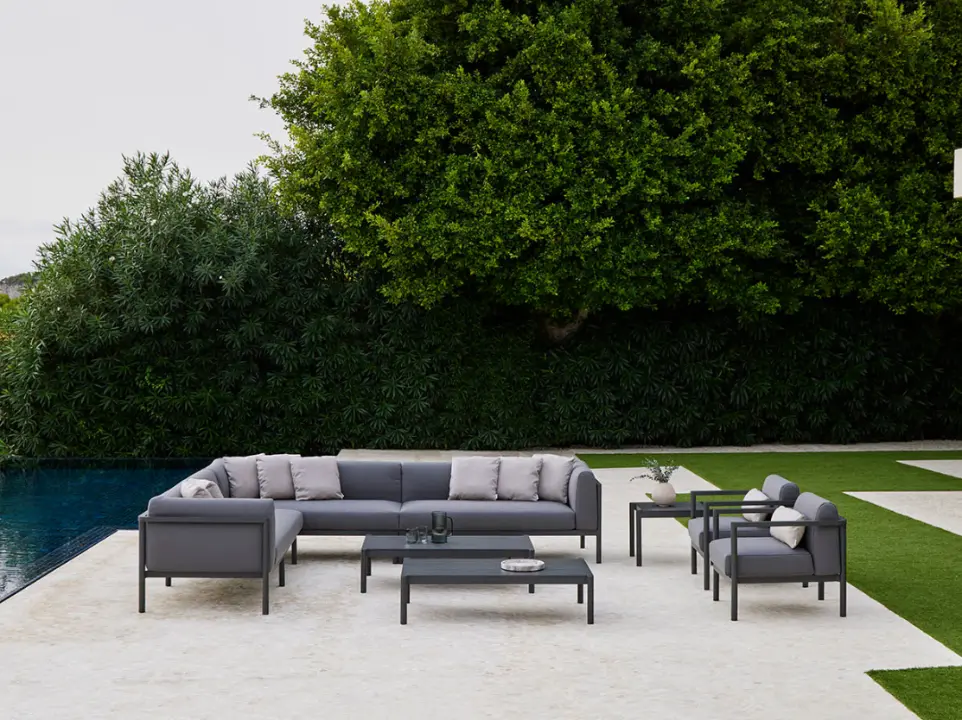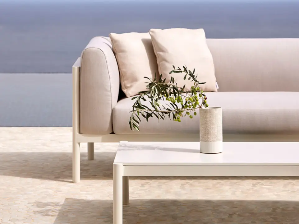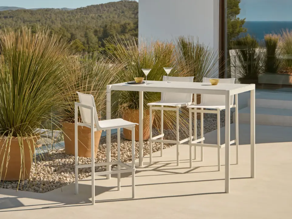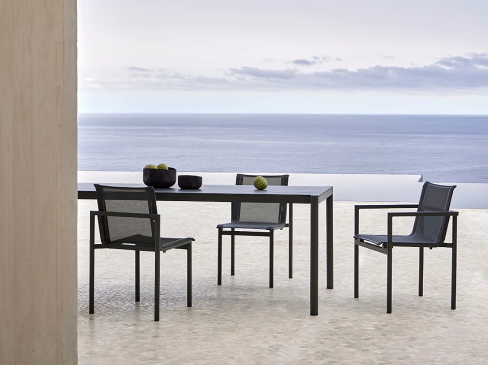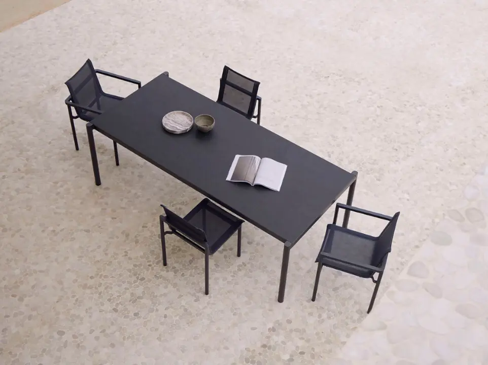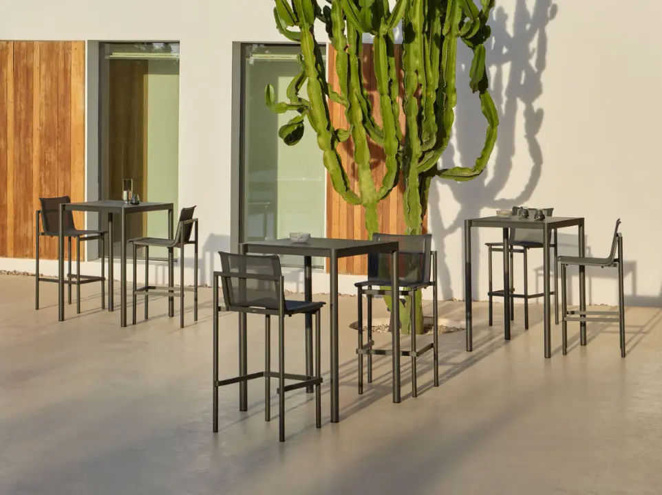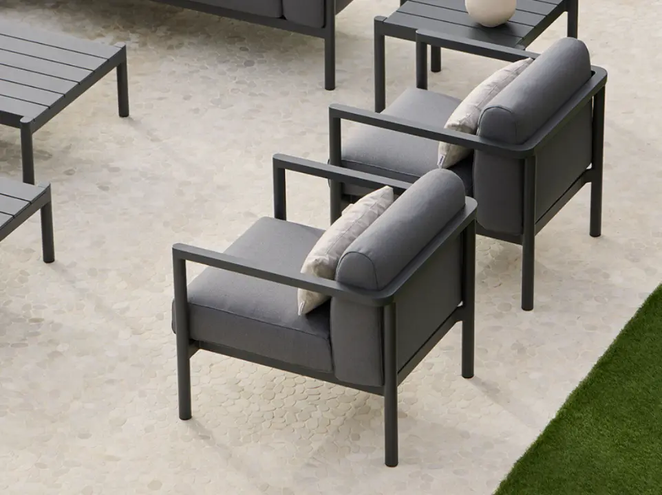 Todas las piezas que conforman la colección son apilables, además, se adaptan a diferentes composiciones con suma facilidad entre ellas, creando zonas de salón, comedor, relax… La estructura de cada pieza está fabricada en aluminio pintado en polvo, un material duradero y 100% reciclable. Los asientos y respaldos emplean texiline, y los cojines usan tejidos resistentes al sol, garantizando una gran durabilidad. La colección apuesta por permanecer vigente en el tiempo, superando las modas pasajeras y fomentando la sostenibilidad.