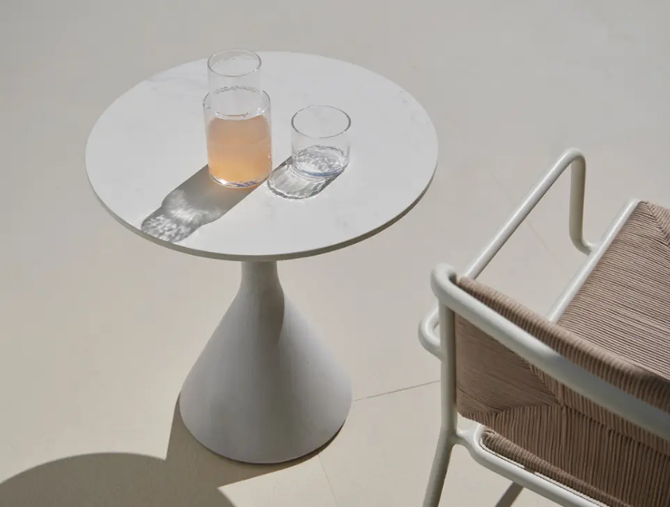 Neck, diseñada por el estudio milanés Meneghello Paolelli, es una colección de mesas de exterior que aporta un toque de distinción a cualquier proyecto de restauración gracias a su distintiva base que une aluminio y hormigón, creando una discontinuidad de texturas dentro de una secuencia formal.