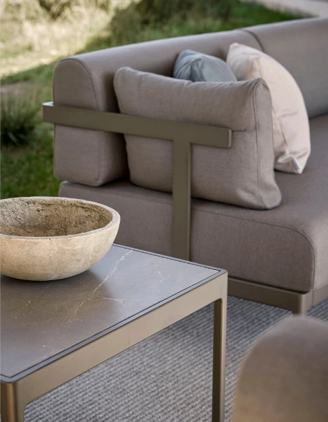 El aluminio es un material clave en el mobiliario outdoor por su ligereza, resistencia estructural y excelente comportamiento frente a la corrosión. Su rendimiento se potencia mediante un tratamiento de pintura en polvo, un proceso que consiste en aplicar un recubrimiento seco y uniforme que se adhiere al metal mediante cargas electrostáticas y se fija posteriormente en horno a alta temperatura.