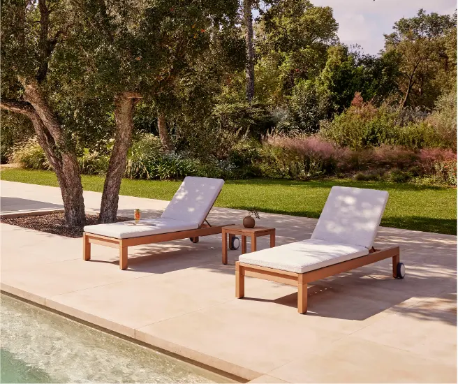 Una de las piezas claves de este lanzamiento es la introducción de TechTeak, un material innovador diseñado para muebles de exterior que reproduce meticulosamente el aspecto cálido y natural de la teca, al tiempo que ofrece una durabilidad y una resistencia a la intemperie inigualables. A diferencia de la teca tradicional, TechTeak no requiere mantenimiento, lo que la convierte en una solución práctica para exteriores. Además, es 100% reciclable al final de su ciclo de vida, lo que refuerza aún más nuestro compromiso con la sostenibilidad.