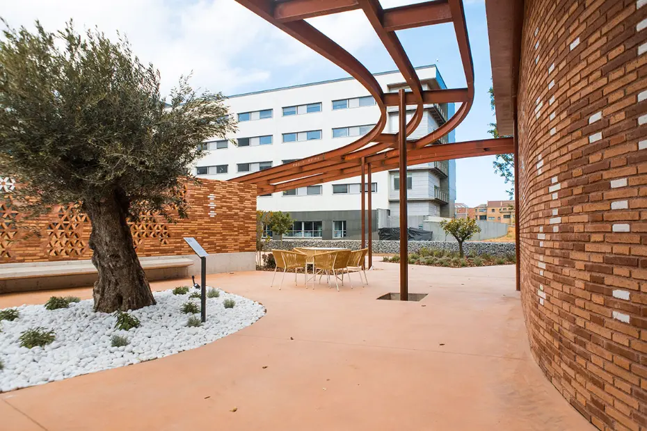Así, todo el conjunto está pensado para inspirar, para transmitir paz y calidez y para reducir la ansiedad. Weave forma parte de la zona de jardín de 650 metros cuadrados, que conecta con la Unidad de Oncología del hospital a través de una zona pavimentada. La zona de exterior complementa a un edificio de 400 metros cuadrados repartidos en dos niveles. Un espacio pensado para transmitir sensaciones positivas.