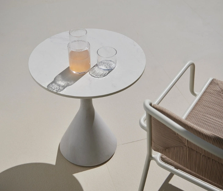 Neck, diseñada por el estudio milanés Meneghello Paolelli, es una colección de mesas de exterior que aporta un toque de distinción a cualquier proyecto de restauración gracias a su distintiva base que une aluminio y hormigón, creando una discontinuidad de texturas dentro de una secuencia formal.